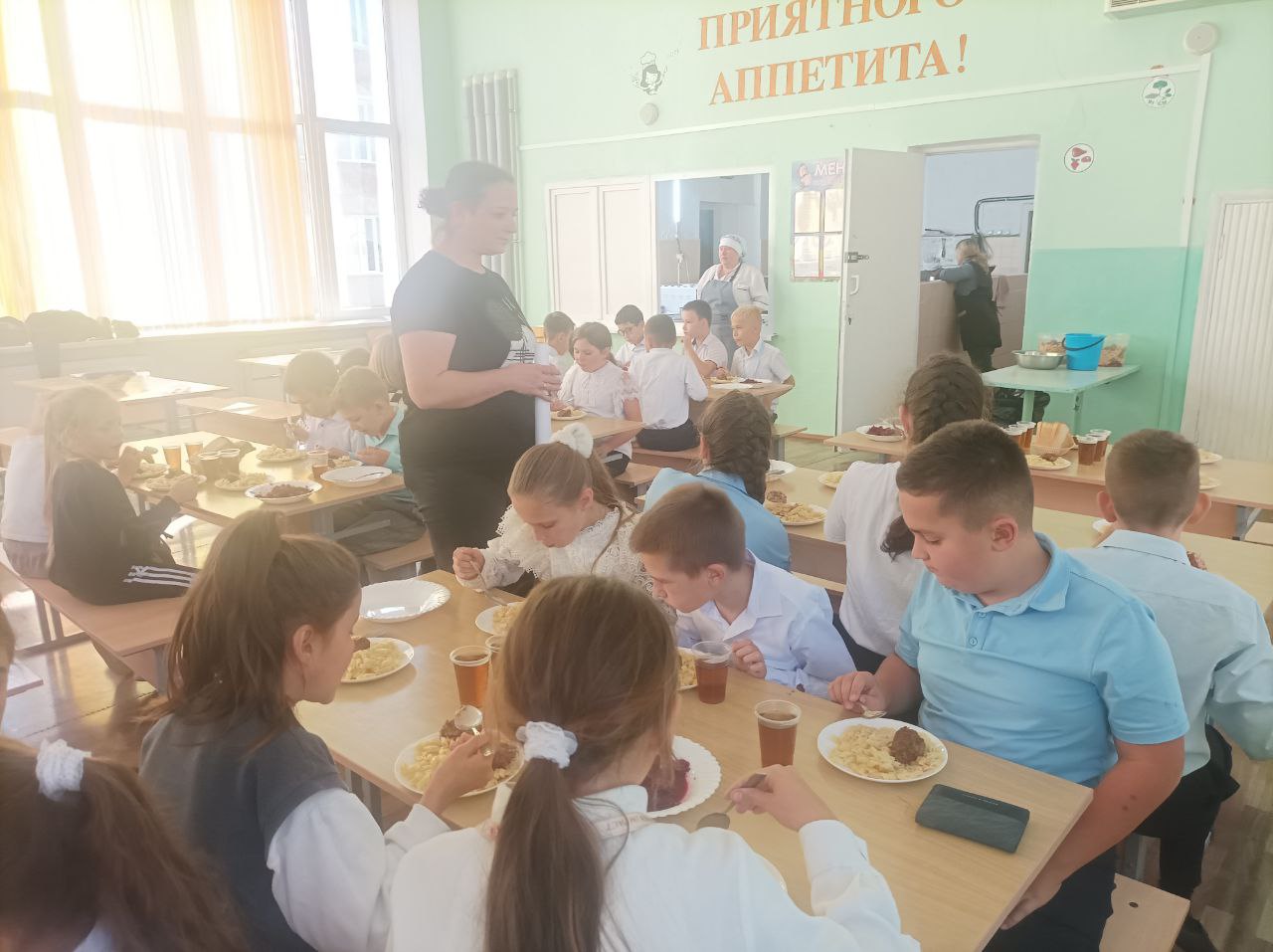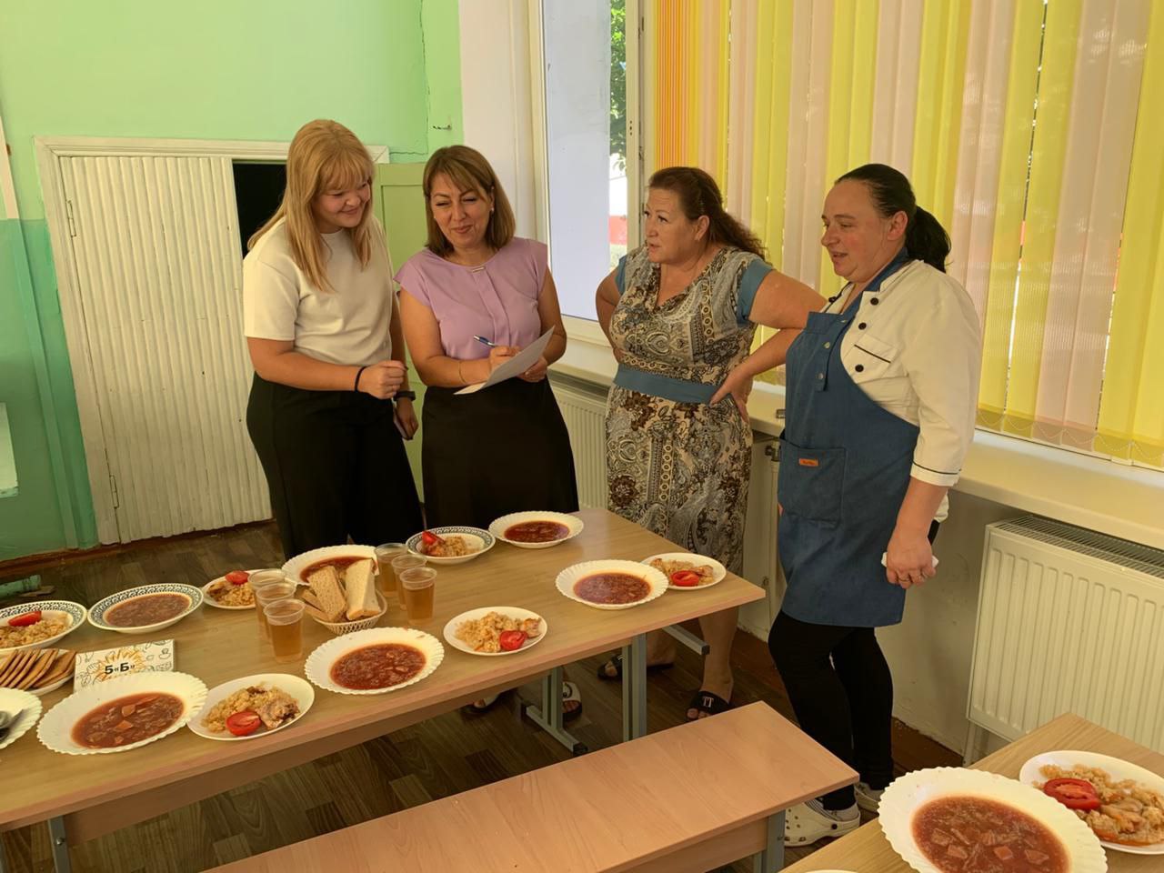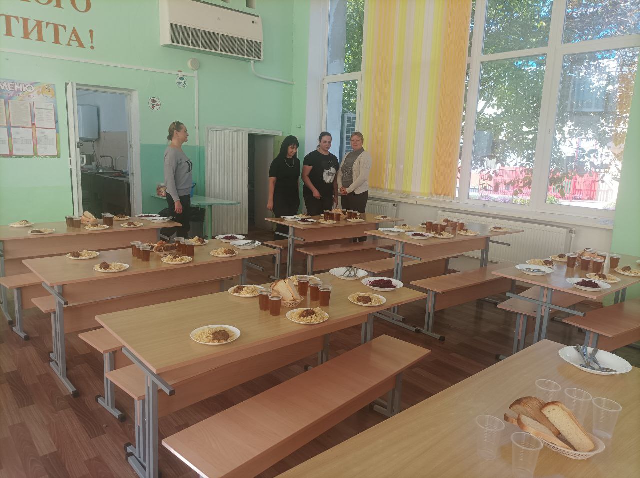 Комиссия проверила соответствие реализуемых блюд утвержденному меню, санитарно-техническое содержание обеденного зала, условия соблюдения правил личной гигиены обучающихся. Кроме того, ответственный по организации питания рассказал комиссии о цикле работы пищеблока.