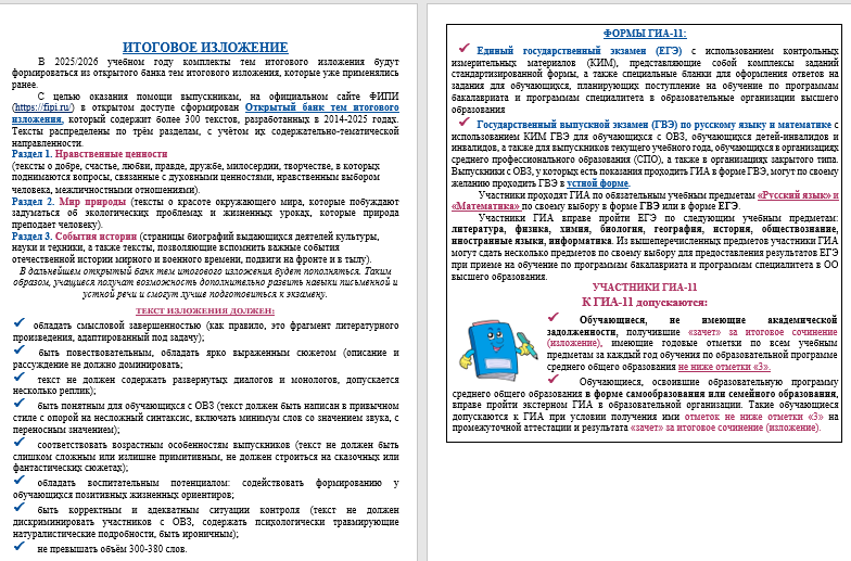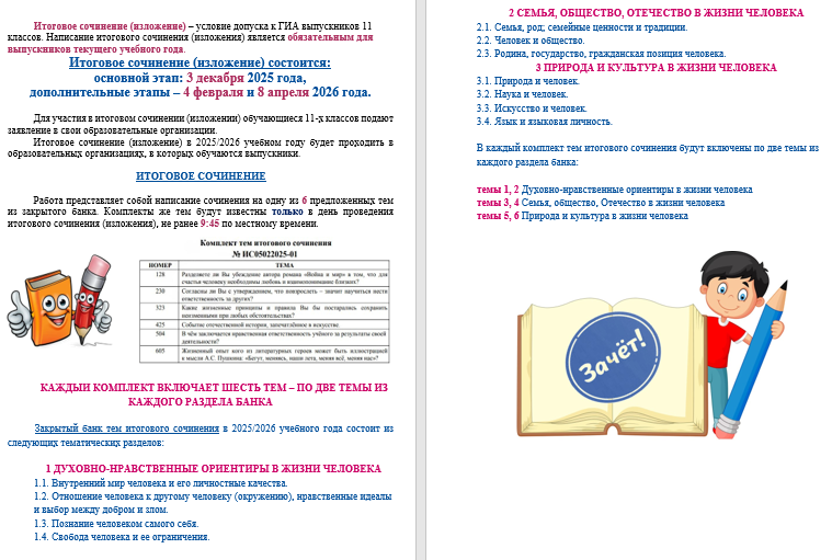 Итоговое сочинение(изложение) 11 класс 2026